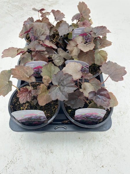 Heuchera can perform ell in full sun or partial shade, the most important thing to do is keep them moist. Eventhough grown for its foliage, Palace Purple will flower between June and August with small salmon pink flowers. Great for use in mixed containers or semi-shady borders.